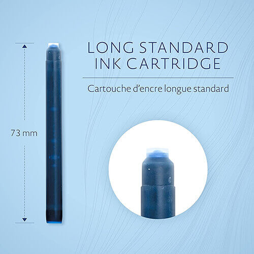 - Cartucho de tamanho padrão de tinta azul permanente adequado para canetas -tinteiros feitas na França.