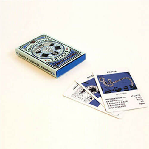 Existe algo melhor em uma pessoa do que um humor sombrio? Nós da República do Gift pensamos que não. Com isso em mente, recriamos o jogo de crianças clássicas com uma reviravolta mais madura. Perfeito para jogar em longas viagens de ônibus ou em porões escuros, nossa nova gama de trunfos de topo fornecerá horas de diversão mórbida.