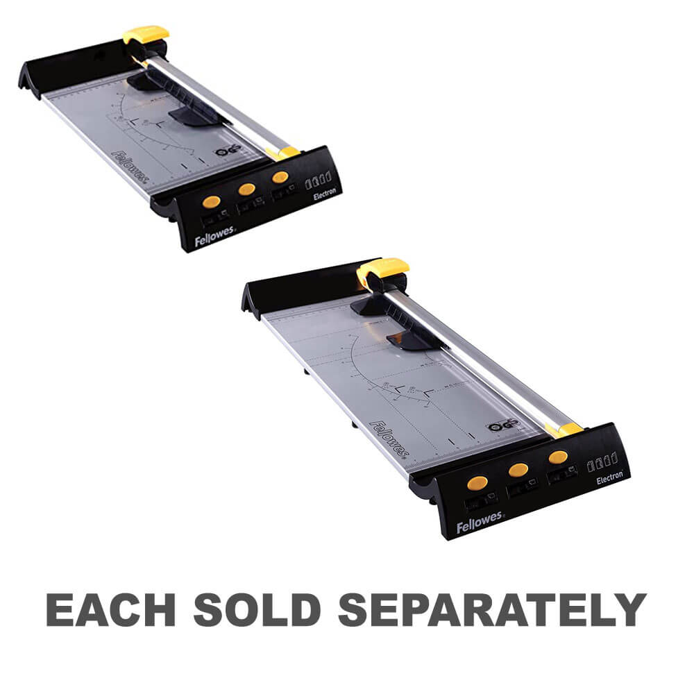 O Electron A4 foi projetado para uso frequente no pequeno escritório, ambiente de escritório em casa. Possui uma capacidade de corte de 10 folhas e usa cartuchos de segurança encapsulados que apenas expõem a lâmina ao aparar, garantindo uma maior segurança em uso. É fornecido com 4 tipos de lâmina (retos, ondulados, perfurados e dobráveis) que podem ser armazenados integralmente dentro da base da máquina e um grampo de papel minimiza o movimento do papel, permitindo um acabamento mais preciso. Uma luz de LED projeta uma linha reta que atua como um guia para cortes retos. O aparador de papel eletrônico A4 é fabricado com uma base de metal durável