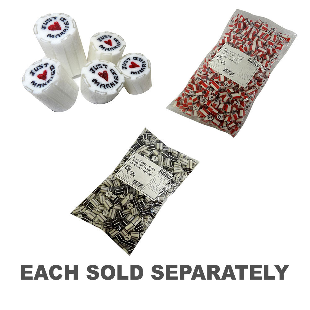 • Bliss: Esses doces de rock exibem uma mensagem "casada" emocionante ao lado de deliciosos corações vermelhos, simbolizando o amor e a felicidade dos recém -casados.