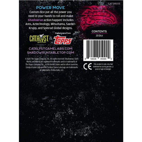 • Usável com qualquer edição da Shadowrun ou a qualquer momento que você precisar de dados de seis lados!