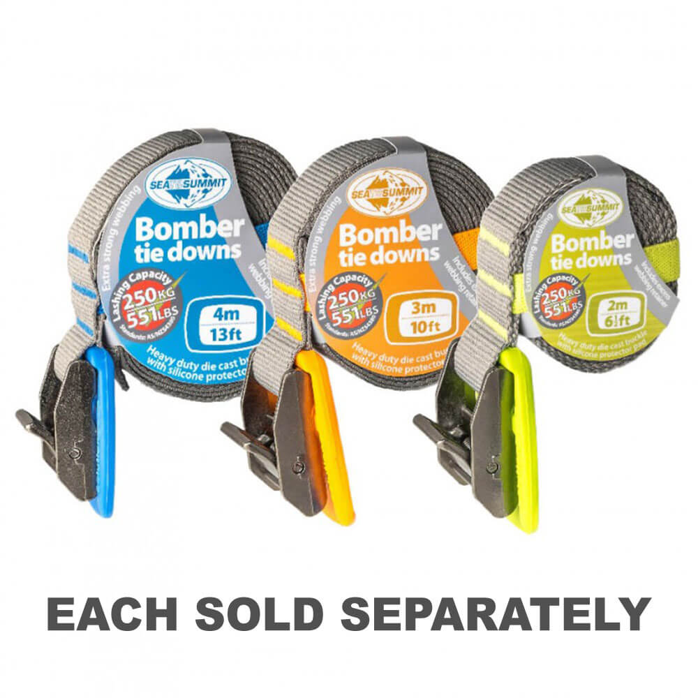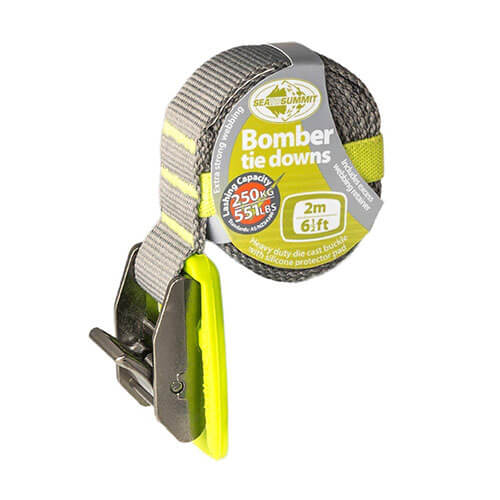Todo o objetivo Tie Down apresenta fivelas de liga de zinco com níquel fundido com um protetor de borracha. A correia foi atualizada para correias de poliéster protegidas por UV de 25 mm. Um prático retentor de correia elástico coordenado com cor de cor mantém as gravata perfeitamente enroladas quando não estão em uso.