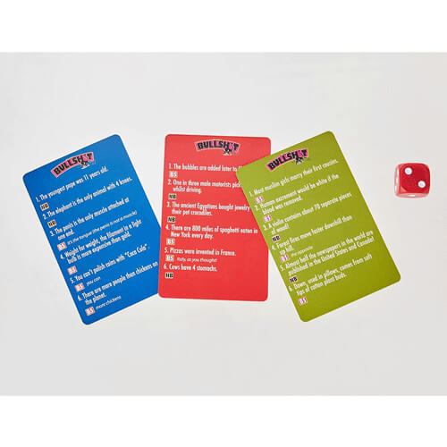 Tror du, at du er en god løgner? Ring til dine venner på deres bullshit med dette hurtige, lette, lette at spille kortspil. Medbring underholdning og humor til bordet med dette ultimative festspil, og forbered dig på at lære, hvem de mest overbevisende løgnere er. Reglerne er enkle, får et sæt fakta og beslutter "bullshit" eller "ingen tyr", derefter 'sats' på resultatet. Kan du skjule sandheden? Dette spil er for dem, der er 16 år gammel af en grund. Et strålende spil til en fest og en perfekt gave til en makker, der er klar til at grine. Komplet med 1 terninger og 3 pakker kort, grave bullshit ud ved din næste sammenkomst. "Kænguruer er venstrehåndet!" "Bullshit!" Fried edderkopper smager som nødder! "" Ingen tyr!