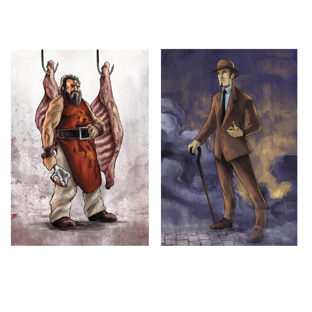 • Den anden spiller er efterforskeren, der har 8 vendinger for at afmaske ham, hjulpet af 3 detektiver, der bevæger sig rundt i brættet og ser på gaderne i træk eller søjle.