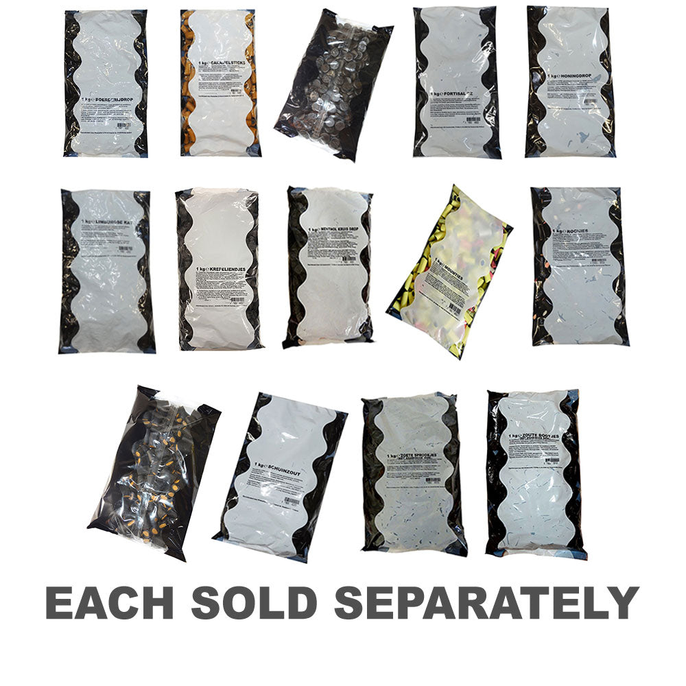 K&H hollandske lakrids 1 kg i Dubbel Zout Rond -sorten er en betydelig mængde lakridsgodis, der giver den autentiske og intense smag af traditionel hollandsk lakrids med en dobbelt salt twist i en rund form. Dette indeholder typisk 1 kg lakrids slik, som er kendt for deres stærke lakridssmag og den ekstra salt smag, der intensiverer lakriserfaringen. Den runde form tilføjer et klassisk touch til sliket. Det er et ideelt valg for lakridsentusiaster, der nyder den robuste og dobbelt-saltede smag af autentisk hollandsk lakrids.