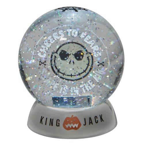 Med både indgraverede elementer og dejlig mærkat, har denne vandkugle græskarkongen på sin mest blændende. Med budskabet "Cheers for Fears" og "Scare er i luften" glitrer denne Snow Globe med ondskab og Halloween høje jinks.