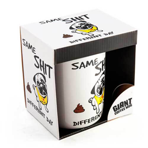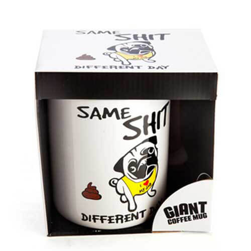 - Med en sød lille mops på et rigtigt stort krus for at få dig gennem en anden af disse dage