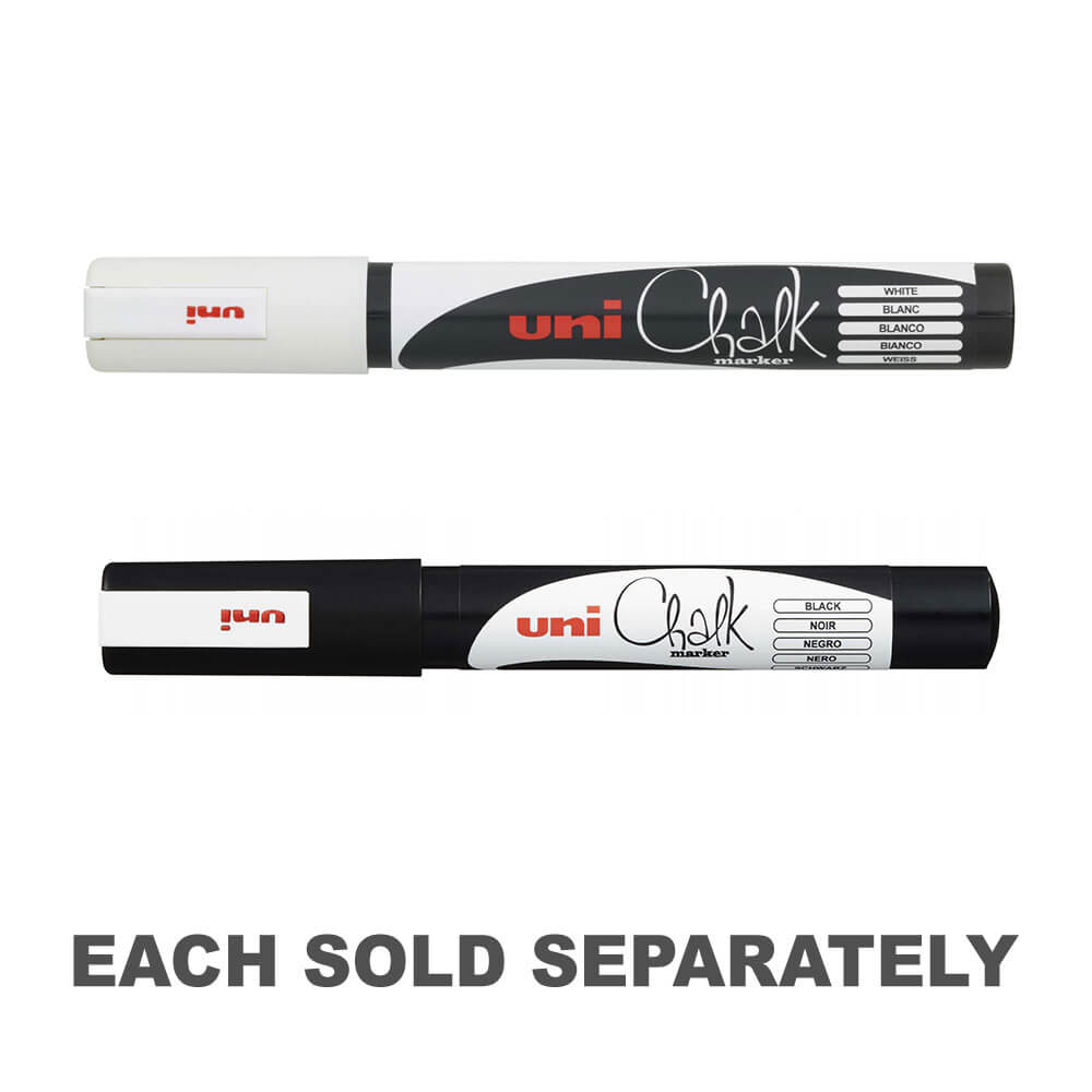 Uni flydende kridtmarkører bruger vandbaseret pigmentblæk, så du kan markere på vinduer, glas, spejle, plast og metaloverflader let. Blækket vil ikke vaske af i regnen, men er alligevel let at fjerne med en fugtig klud. Til permanent anvendelse kan markørerne også bruges på tavler til en dristig erklæring.