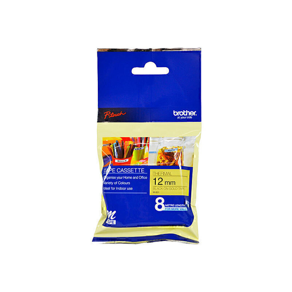 • Fügen Sie Ihren Etikettierungsprojekten mit Bruder M831 Black auf Gold -Etiketten -Band einen Hauch von Eleganz hinzu