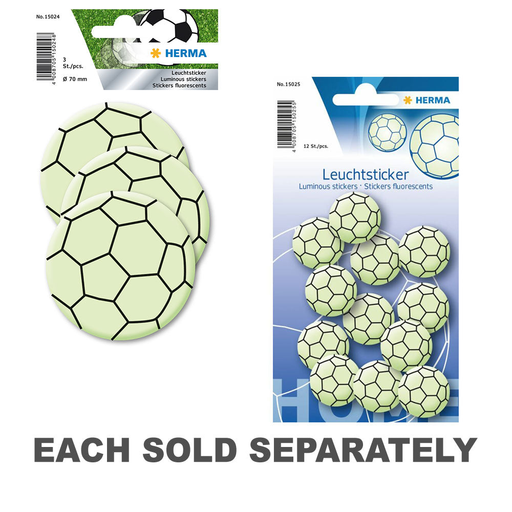 Ready to kick off some glow-in-the-dark fun? This Soccer Glow in the Dark Sticker from Herma is here to score big with your imagination! Say goodbye to ordinary surfaces and hello to game night excitement with this dynamic sticker. Whether it's on your bedroom wall, sports equipment, or party decorations, this sticker adds a touch of athletic flair to any setting. Let this glowing soccer ball light up your nights as you rally your team spirit and cheer for victory. Get ready to play under the stars with this delightful soccer sticker!