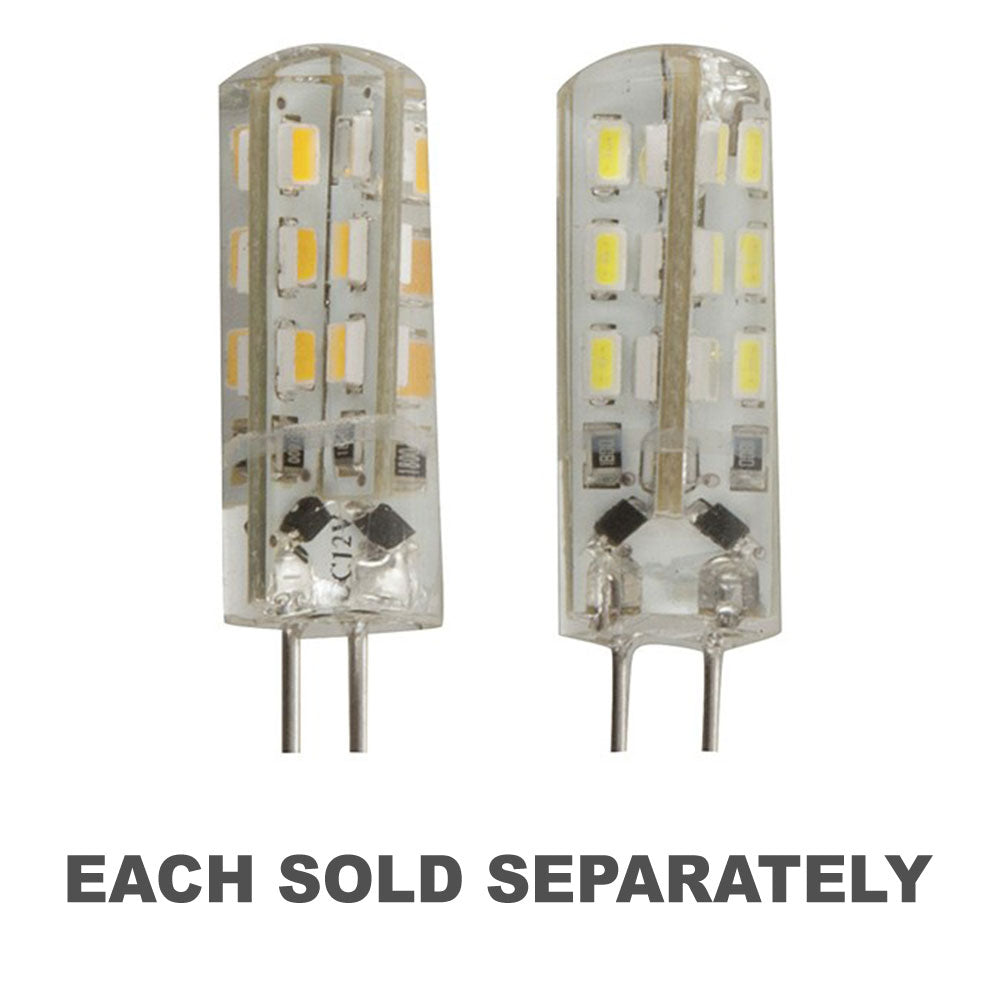 LED-Ersatz mit geringem Stromverbrauch für G4-Halogenlampen. Geeignet für den Einsatz in Leuchten für Haushaltsanwendungen und Freizeitfahrzeuge. Vollständig in Harz eingekapselt, wodurch sie wasserdicht sind.