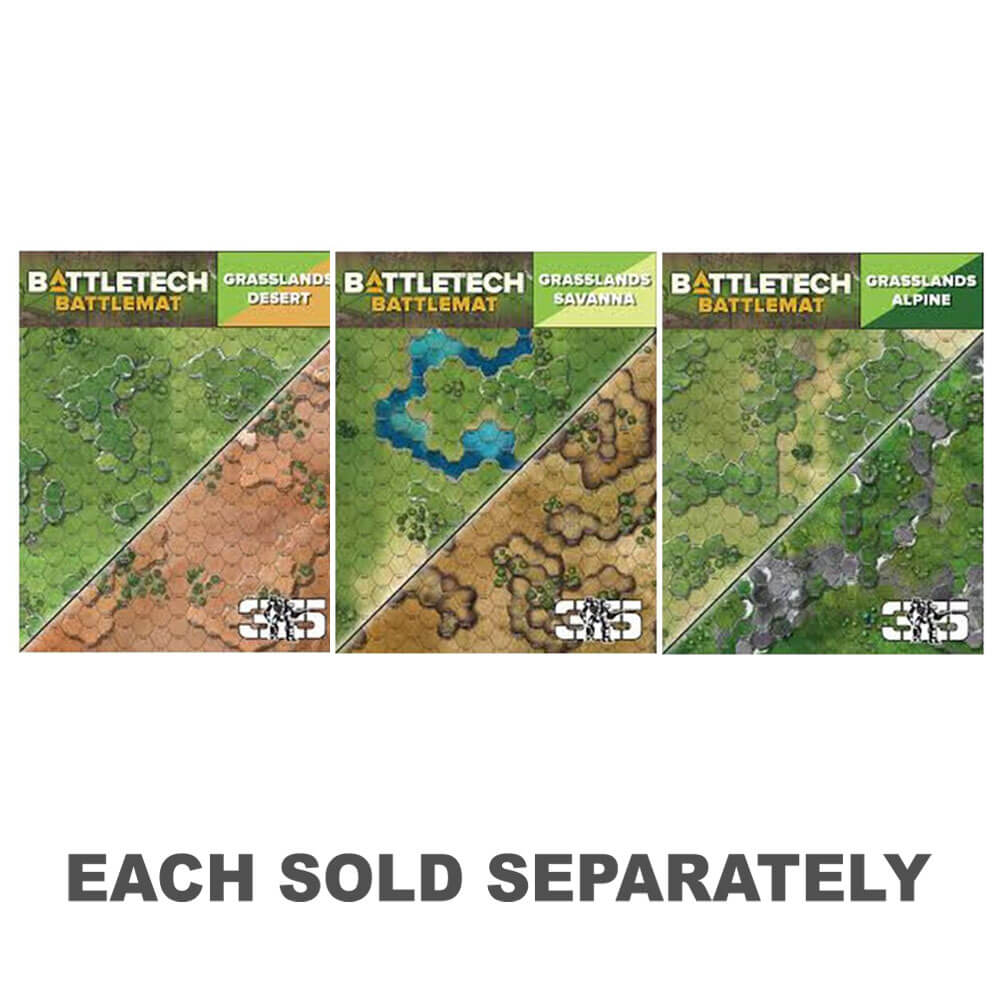 • Each map is 34” x 22", the perfect "two-map" size for most games. The maps are high-resolution with great color quality, making them some of the most beautiful and durable BattleTech maps ever produced. The neoprene is also thin for ease of storage, and double-sided for versatility. The secondary side also includes brand-new maps—designed to be used together—as featured in the soon-to-release BattleTech Map Pack: Grasslands. Each of the four BattleMats displays a unique Grasslands map on the back.