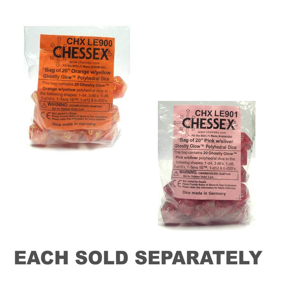 • Purchase includes 20 polyhedral dice in the Ghostly Glow style