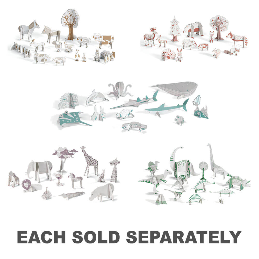 Un kit creativo e interactivo con una variedad de piezas de cartón para colorear y ensamblar, creando una escena de bosque con animales. Una vez que se completa el componente de actividad artística y de diseño, los niños pueden jugar con todos los elementos que crean y ¡es el comienzo de historias fabulosas! Este set es un producto certificado FSC.