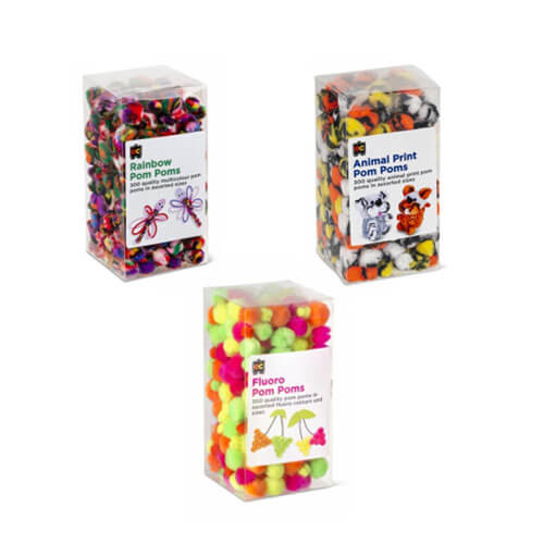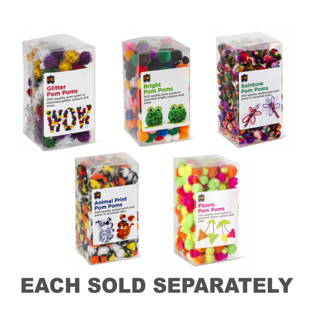 Los pompones son divertidos para muchas manualidades, como hacer medias navideñas o simplemente jugar con ellos. Estos pompones brillantes y esponjosos agregarán un efecto 3D a cualquier actividad artesanal. Surtido de colores y tamaños de purpurina en caja de 200.