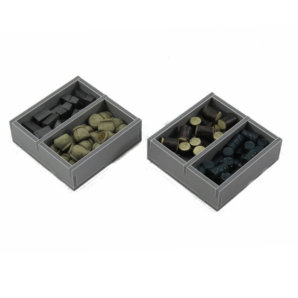 • Inserto compatible con Scythe® y la expansión Invaders from Afar®. El diseño proporciona almacenamiento eficiente y un juego mejorado. Muchas de las bandejas se pueden utilizar durante el juego y ayudan enormemente en los tiempos de preparación y retirada.