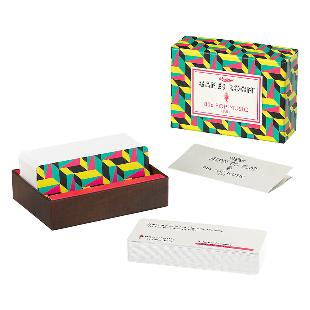- Estarás desenterrando tus viejos mixtapes al final de este cuestionario sobre música de los 80, con 140 opciones de opción múltiple. Tarjetas de preguntas presentadas en una brillante caja geométrica inspirada en los años 80.