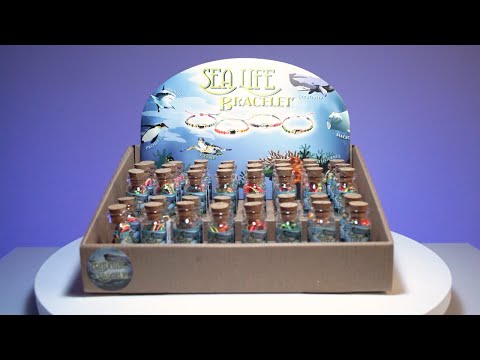 - Guardado en una pequeña botella de vidrio con tapón de corcho y etiqueta Sea Life.