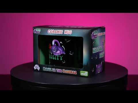 ¡Estarás bien felino todo el día! Taza de cerámica con un gato loco descarado rodeado de caras sonrientes. Solo lavado a mano: no microondas o lavavajillas.