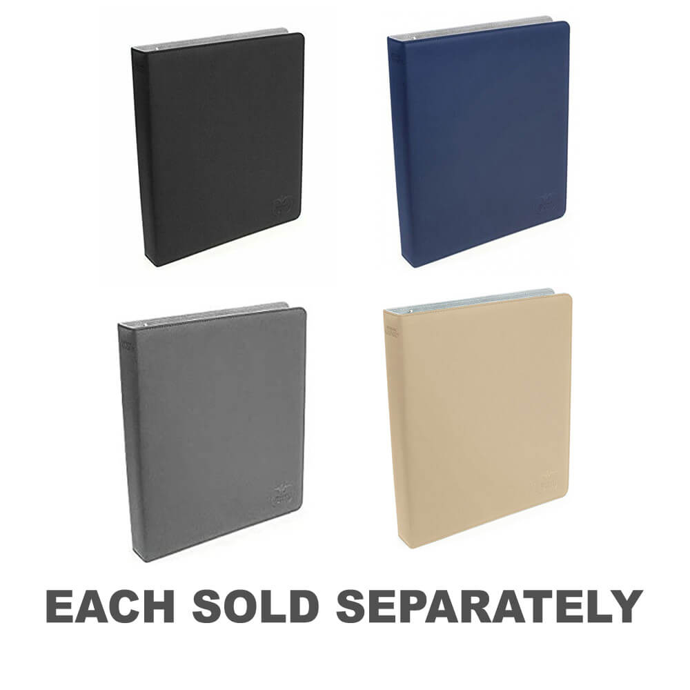 Álbum de cartões de alta classe com capa Xenoskin (TM) e anéis D 30 mm reforçados para 9 páginas de tamanho padrão.