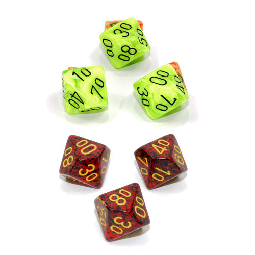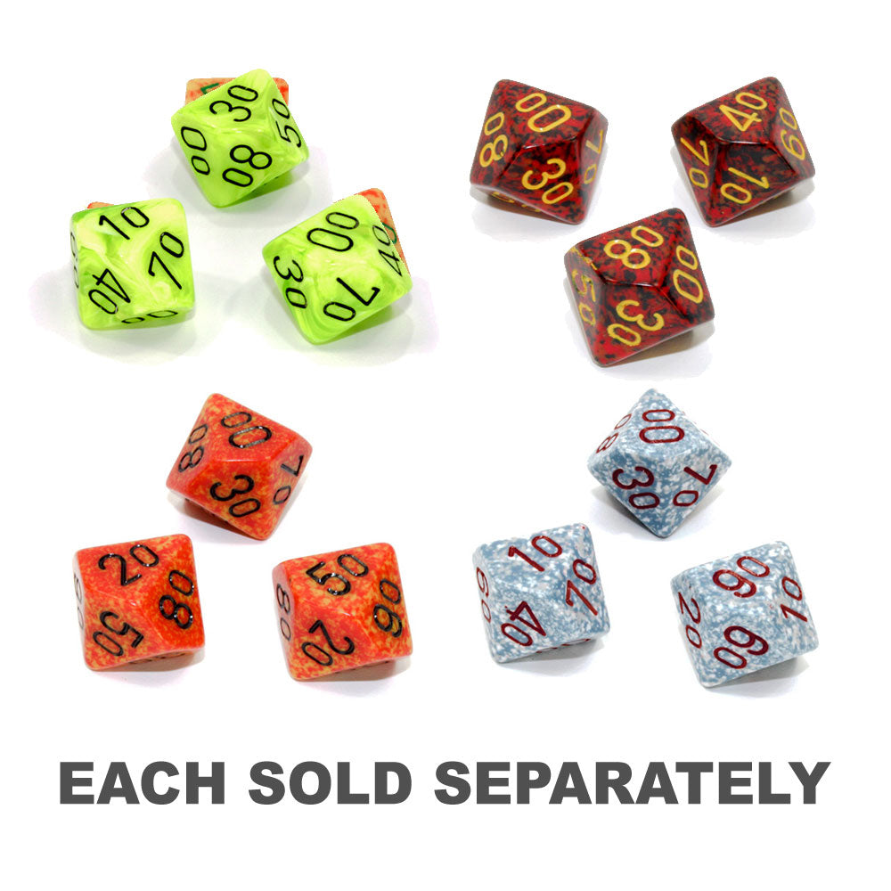 Speckled Polyhedral Lotus Tens 10 ~ Multiple loose dice are pictured to show all sides and possible color variations. Item Code is for individual dice.