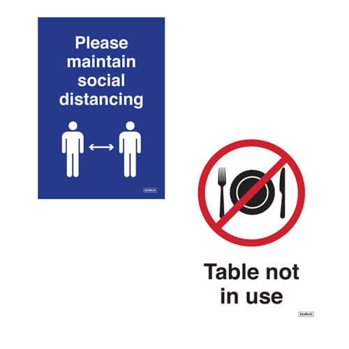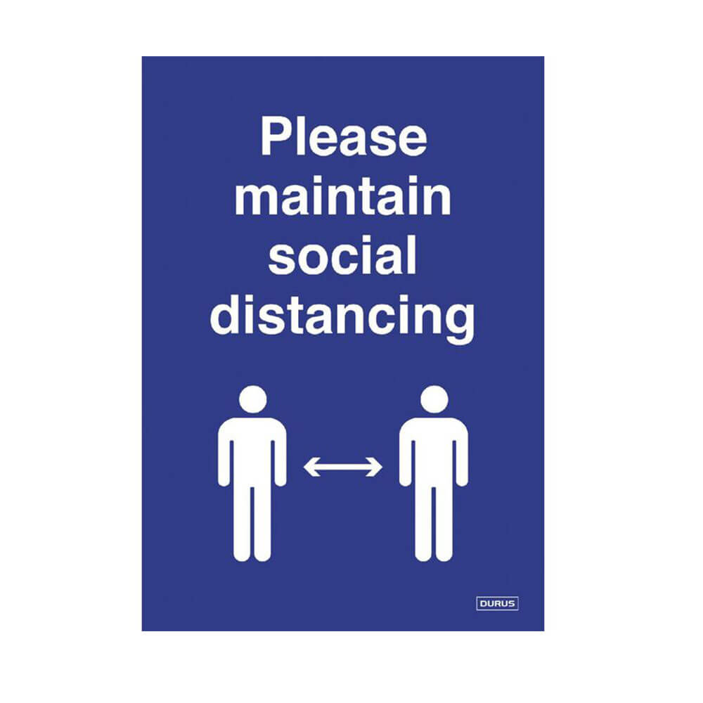Esse sinal de tenda de Durus é ideal para usar na sua empresa para se comunicar com os clientes. Ele diz 'por favor, mantenha o distanciamento social' e está independente, permitindo que você o coloque em uma mesa limpa. É feito de polipropileno de alta qualidade e tem a mensagem impressa nos dois lados.