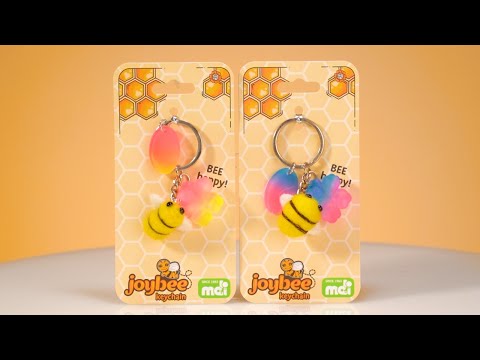 Keychain de abelha feltrada fofa com olhos negros redondos. 2 encantos semi -transparentes com uma flor de hibiscus e etiqueta circular. O item pode variar entre 2 cores: pêssego/amarelo e azul/rosa.