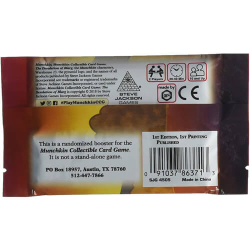 Eric Lang e Kevin Wilson entregam algo novo no Universo Munchkin: um novo jogo de cartas colecionáveis que se mantém no jogo de nível competitivo, mas ainda mantém a bobagem pateta pela qual Munchkin é famoso. O jogo de cartas colecionáveis do Munchkin é um jogo de combate no qual 2-4 jogadores subiram de nível após a curva, colocam saques em jogo para se dar benefícios e ataques (ou ataques de bluff!) Uns contra os outros. Elimine o outro jogador primeiro e você ganha! Nas palavras do co-design Eric Lang, "Munchkin TCG é um jogo muito diferente do Munchkin. Imagine todo o humor incrível de Munchkin como um curto e competitivo slugfest", o jogo de cartas será distribuído como fixo dois- Conjuntos iniciantes de jogadores e expansões randomizadas de reforço.