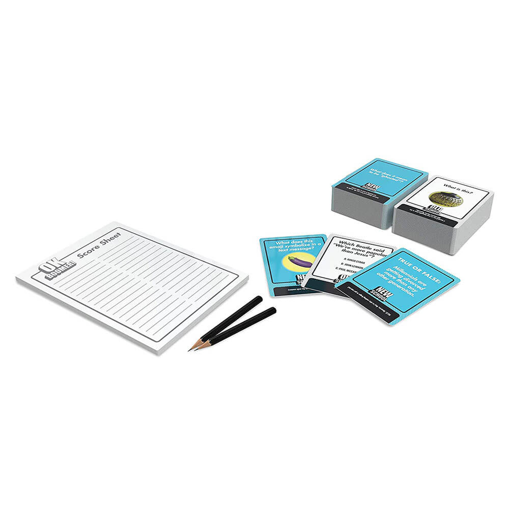 Ok Boomer para jogos de adultos. Você está fora de contato ou o seu jogo de curiosidades é forte? Reúna as gerações para este divertido jogo de festa, onde você fará sua lacuna de idade à prova! Separe -se em equipes: Old School vs New School. De palavras de gíria a personagens de desenhos animados, a nova escola adivinha as perguntas sobre a velha escola e vice -versa! Quem conhece mais a equipe sobre o outro lado está realmente acordando!