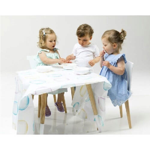 • Auxilia em proteger suas superfícies contra derramamentos de tinta, comida, massa, giz de cera, marcadores, cola e muito mais.