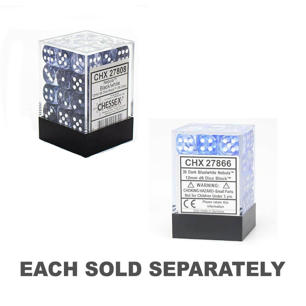 • Nébuleuse 12 mm D6 Bloc de dés chessex (36 dés) - noir avec pipes blancs