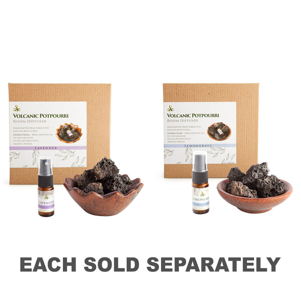 - Comprend un bol en terre cuite, des pierres volcaniques, un sac à cordon noir et une huile essentielle de lavande.