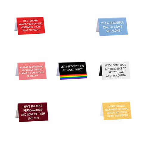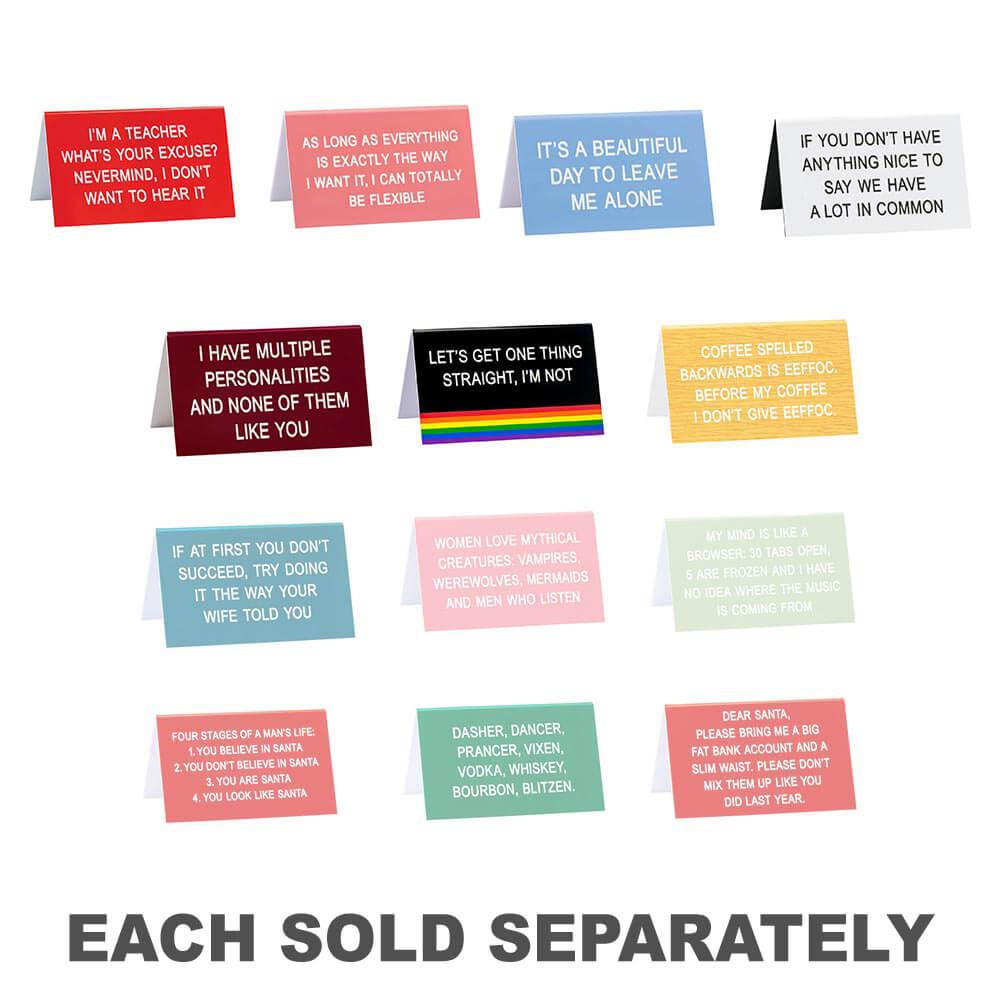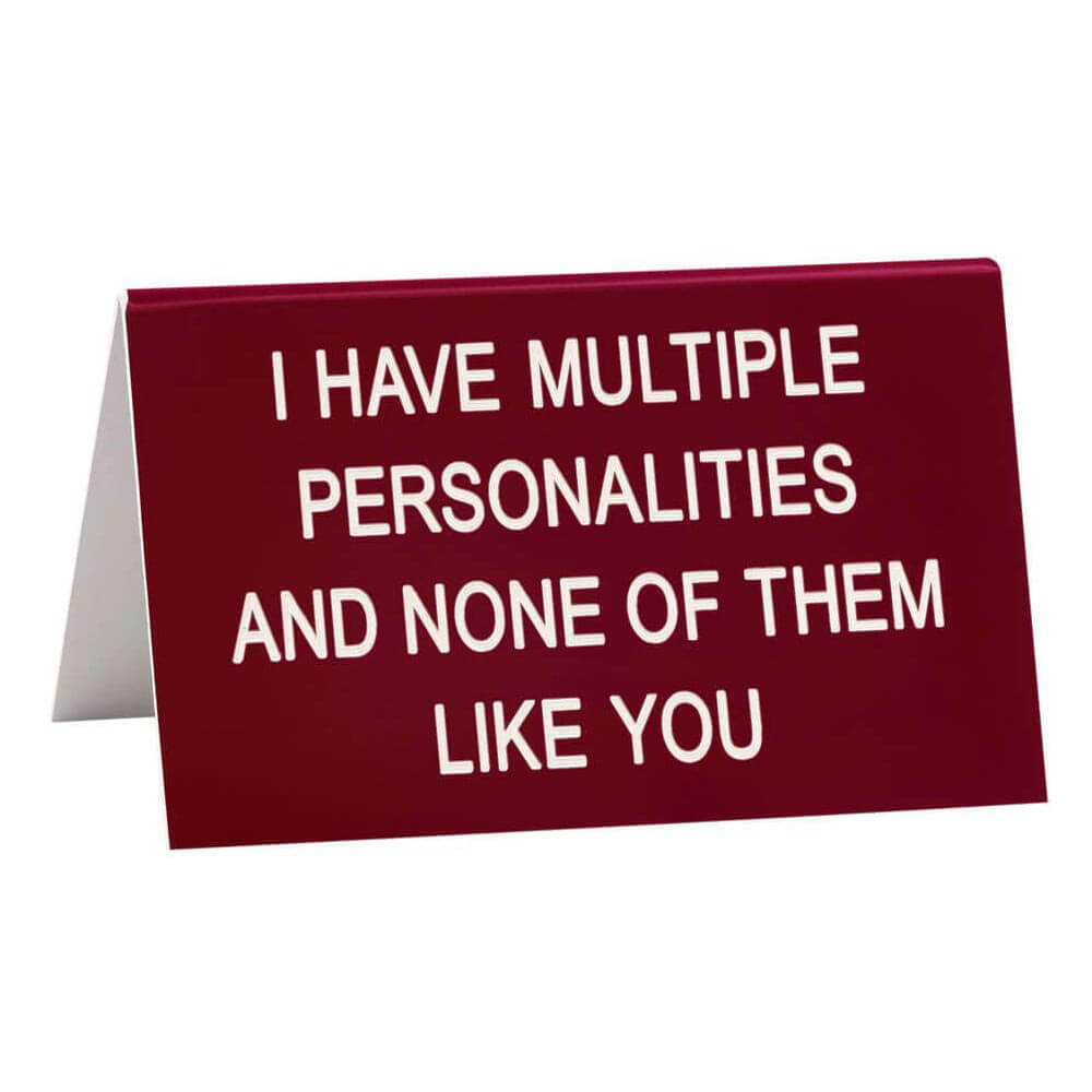 Brisez la monotonie du travail et apportez des lols au bureau avec ce panneau de bureau bordeaux de dire quoi?. Légende se lit comme suit: «J'ai plusieurs personnalités et aucune d'entre elles comme vous». Mesures du produit 11,5 cm x 7 cm.