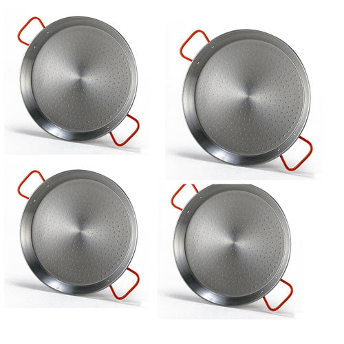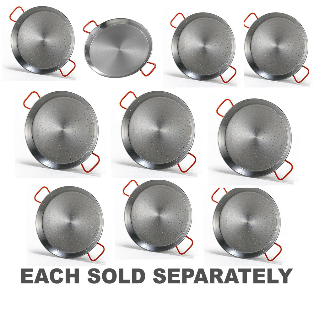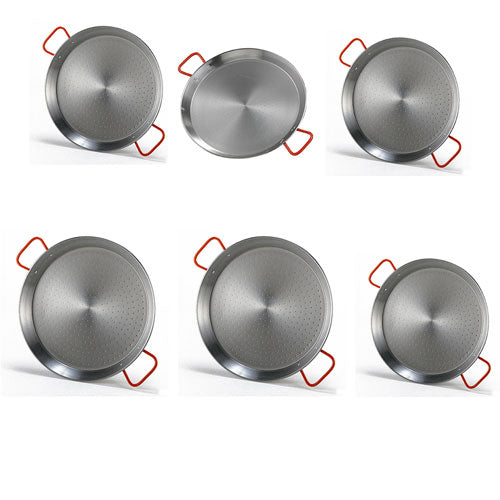 Créez une paella légendaire avec cette authentique poêle de fabrication espagnole, pour une expérience de cuisine traditionnelle suprême. Profitez de faire la recette la plus emblématique d'Espagne, inventée à l'origine par les travailleurs ruraux et préparé à l'extérieur avec des ingrédients de saison. Que vous créiez un chef-d'œuvre végétarien, de fruits de mer ou de viande mélangée, les casseroles traditionnelles de Garcima sont conçues pour faire de la cuisson ce délicieux plat. La conception ronde, large et basse du moule de paella permet aux aliments de cuire rapidement à feu vif, les côtés inclinés rendent les ingrédients accessibles pour remuer et leurs poignées surdimensionnées permettent à la maison de cuire en toute sécurité et de transférer facilement les aliments de la table de cuisson à la table. Cette casserole instantanément reconnaissable à manche rouge et coupée à la main est en acier poli poli en carbone mince qui répond rapidement aux changements de température. Convient pour une utilisation sur les tables de cuisson électriques et à gaz, ainsi que l'extérieur sur une flamme ouverte ou un gril de charbon de bois.