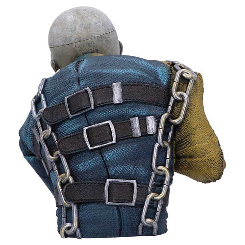 Show your allegiance to the Monsters of Rock with this electrifying and Officially Licensed Iron Maiden Piece of Mind Bust (Small). Featuring the bands music icon Eddie as he leans forward restrained by a straightjacket and chains. He can be seen intimidating anyone that passes by with his menacing stare. Cast in high-quality resin before being expertly hand-painted, this ideal piece of rock memorabilia will bring terror and excitement to any Maiden fan's soul.