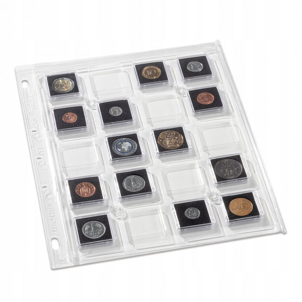- Pack of 2 mini sheets designed to hold Quadrum coin capsules.