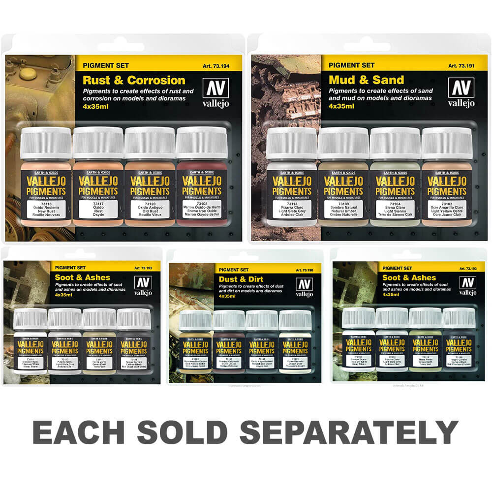 - Les pigments de Vallejo, une sélection de terre naturelle et de pigments synthétiques.