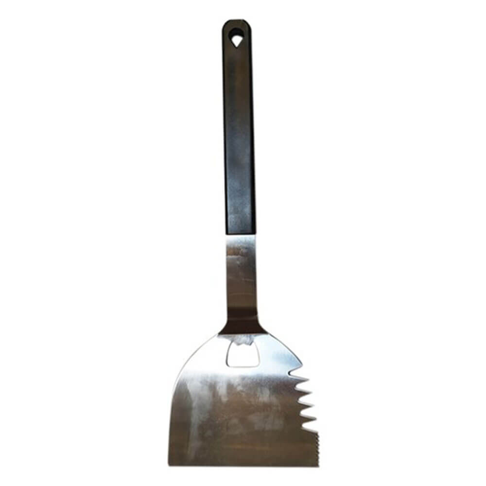 屋外マジックバーベキューチャンピオンスパチュラはステンレス鋼で作られており、その長いハンドルで、手を燃やすことなく食べ物をひっくり返すことができます。ボトルオープナーは、バーベキューの横でビールを飲むと非常に便利です。