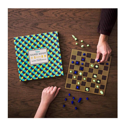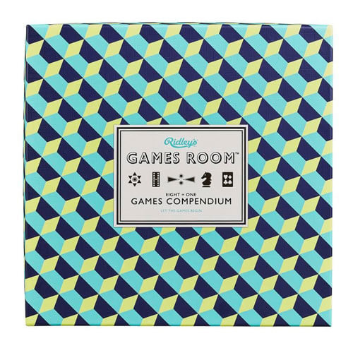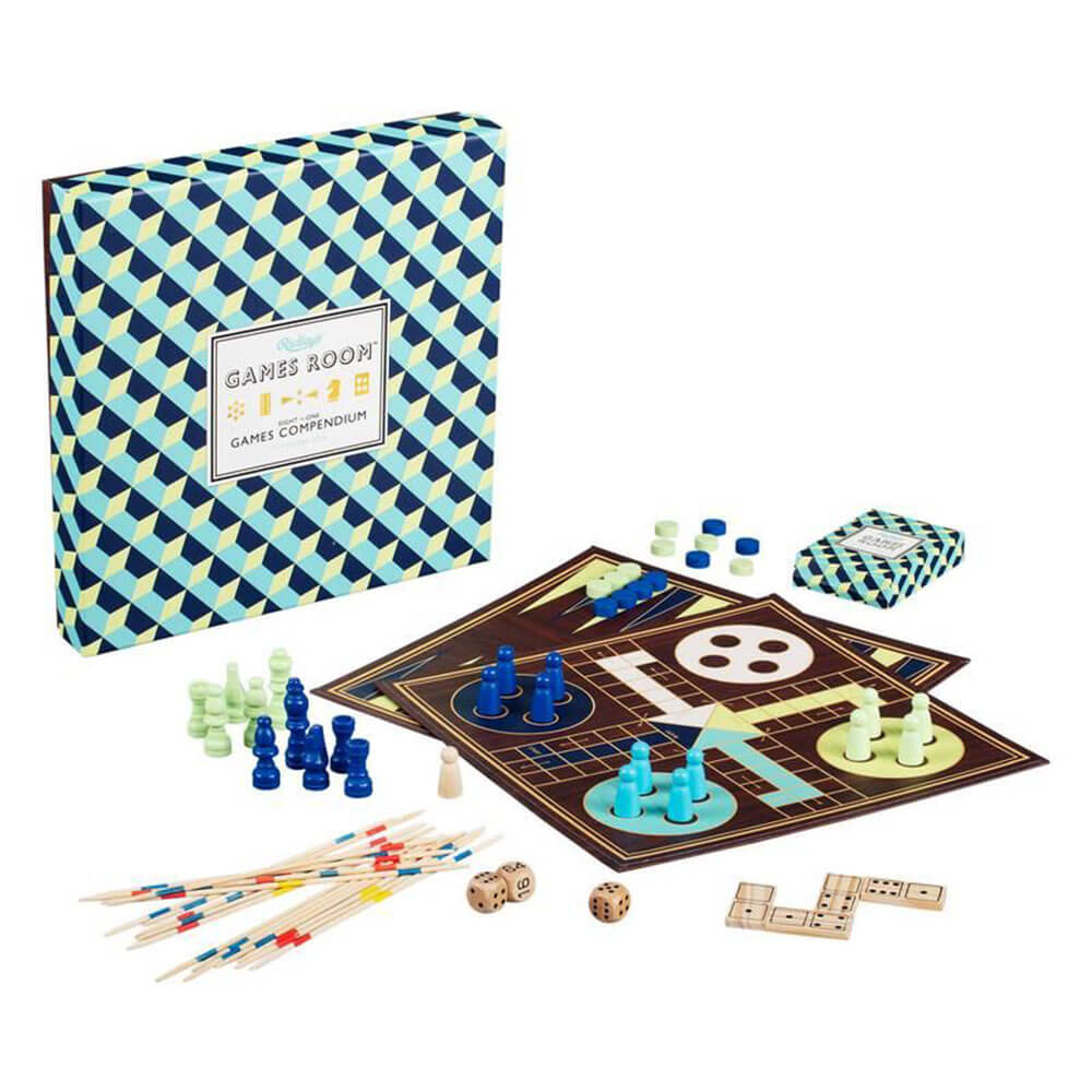 Ridley's Gamesのこのゲーム大概要でクラシックなゲームの夜をお過ごしください! 8つのゲーム大概要。幾何学的なプリントボックスにパッケージ化されています。バックギャモン、チェス、中国のチェッカー、ドミノ、ドラフト/チェッカー、LUDO、ピックアップスティック、トランプ、指示が含まれています。