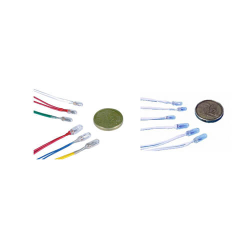 ミニランプのさまざまなサイズと電圧の広い範囲。事前に接続された配線ケーブルが付属しています。