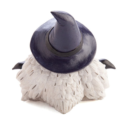 Schattige familie van besneeuwde uilen met heksenhoeden. Veertextuur en zwarte vlek details lijken net als het echte dier. Gemaakt van stevige polyresin met een luxueus, zwaar gevoel.