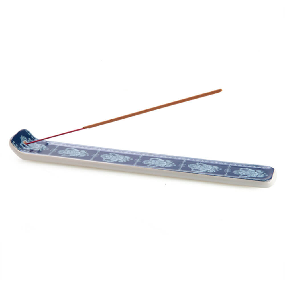 Witte en blauwe wierookbrander met de hindoe -godheid, Ganesha. Gemaakt van kwaliteit keramiek