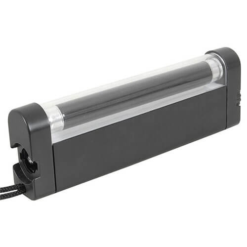 Dit zal geen verduisterde feestkamer vullen met witte gloeiende tanden. Het werkt echter goed in een kleine ruimte. Inclusief een kleine vleklicht- en handdraagriem. Leuk bij het kamperen enz. UV -buis is 4 watt beoordeeld.