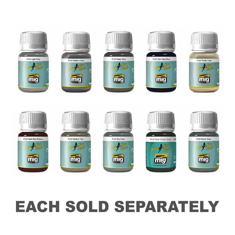 Paneel wassen voor Amerikaanse vliegtuigen van de Tweede Wereldoorlog in het Pacific Theatre of Operations, geschilderd in donkerblauw zoals Corsairs, Hellcats en vele andere Marine Corp. & Naval Aircraft. Het is ook erg handig voor elk sciencefictiononderwerp, schepen of voertuigen die in blauw zijn geverfd. Ons panellijnwasbereik is speciaal ontworpen om zacht gewassen paneellijnen in vliegtuigen te maken en is ook perfect voor andere voertuigen waar we subtiele effecten willen verkrijgen, zoals sciencefiction -onderwerpen, schepen en treinen.
