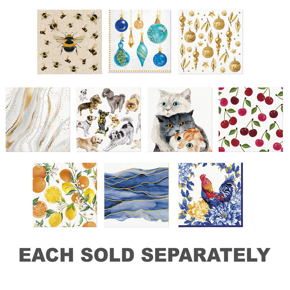 - Afmetingen: 33 x 33 cm, pakket van 20. De servetten zijn gedrukt met milieuvriendelijke op water gebaseerde inkten.