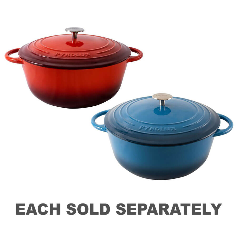 Pyrolux Pyrochef støpejernsgryte er en lett designgryte, opptil 40 prosent lettere enn tradisjonelt støpejern. Den kan brukes på hvilken som helst varmekilde, inkludert induksjon. Med et 3 -lags emaljert belegg internt og eksternt, er denne pannen lett å ta vare på og ekstremt holdbar. Diameter: 20 cm. Kapasitet: 2 liter.