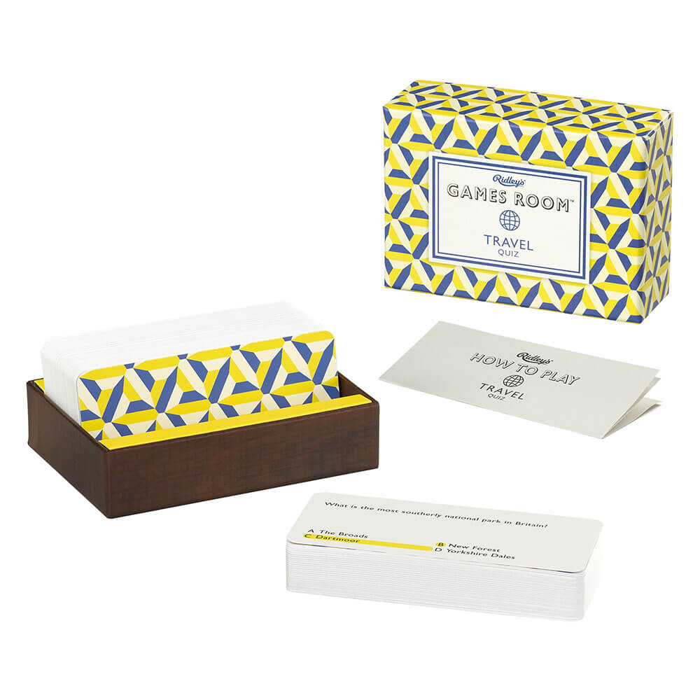 • Pakk sekkene og gjør deg klar til å reise verden rundt med denne reisequizen, inkludert 140 spørsmålskort med flervalgssvar.