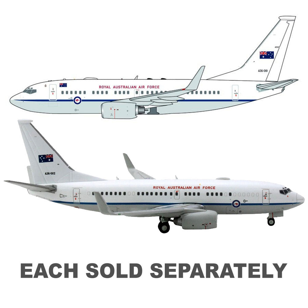 This scale model represents the Royal Australian Air Force's Boeing 737-700W, a versatile aircraft used for government and military transport. With its distinctive livery and sleek design, this model highlights the balance of efficiency and capability that defines the RAAF's fleet. A great addition for aviation enthusiasts and collectors of military aircraft.