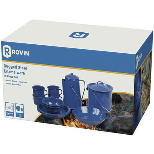 Zarówno garnek do kawy, jak i Billy mają zawiesić się nad ogniskiem - przez cały dzień i noc. I czy zauważyłeś, jak duży jest każdy kawałek? Możesz opróżnić pełną puszkę „fasoli” na każdym talerzu obiadowym i nadal mieć wystarczająco dużo miejsca na jajka, tosty i boczku! Mniam. Ten zestaw nie pęknie, jest przeznaczony do długiego używania krzaka. Może to chip, ale to nie ma znaczenia. Możesz nawet dać mu szorstki czysty z garstką czerwonego piasku outback. Będziesz zachwycony tym zestawem. Będzie to część tworzenia atmosfery outback za cenę przypominającą również stare dobre czasy.