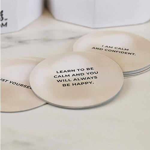 • Pakiet obejmuje 100 pozytywnych afirmacji wydrukowanych na pięknych, inspirowanych perłach kart